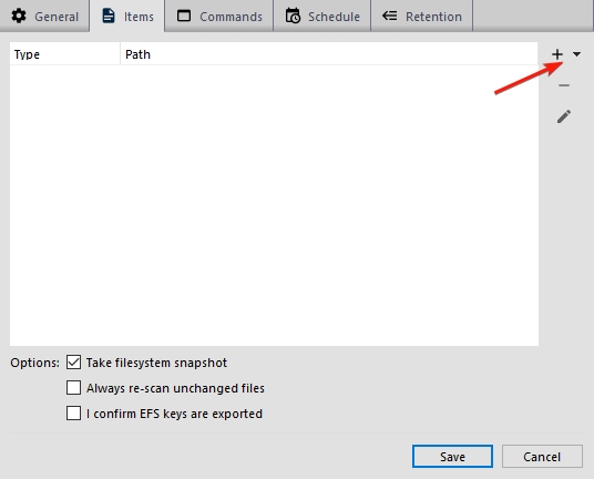 Edit the Protected Item, from the "Items" tab click the down arrow next to the "+" button.