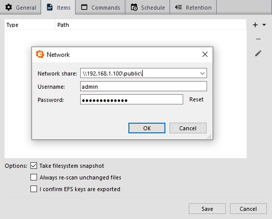 Backing up Windows Network Shares and UNC Paths
