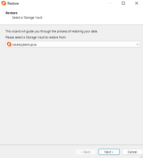 Step 2. Select a storage vault or continue with the default if you only have one.