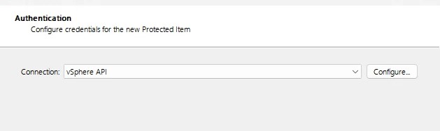 Select `vSphere API` under Connection and click `Configure`... to enter user credentials.