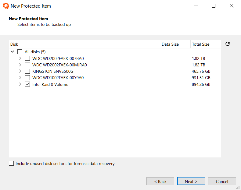 Advanced Option: Include unused disk sectors for forensic data recovery