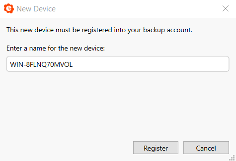 5. You will be prompted to register the new computer. Give the computer a name press 'Register' to add the new computer to your account.&#x20;