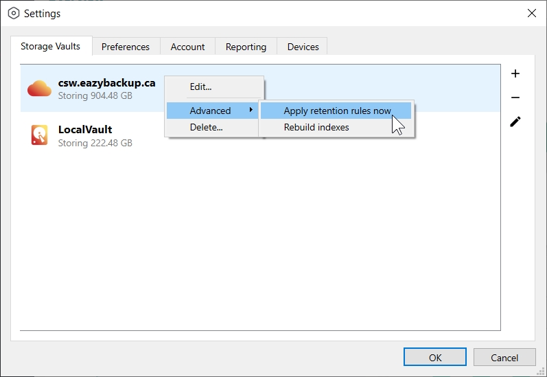 On the Storage Vaults tab, Right click on the Storage Vault -> Advanced -> Apply retention rules now