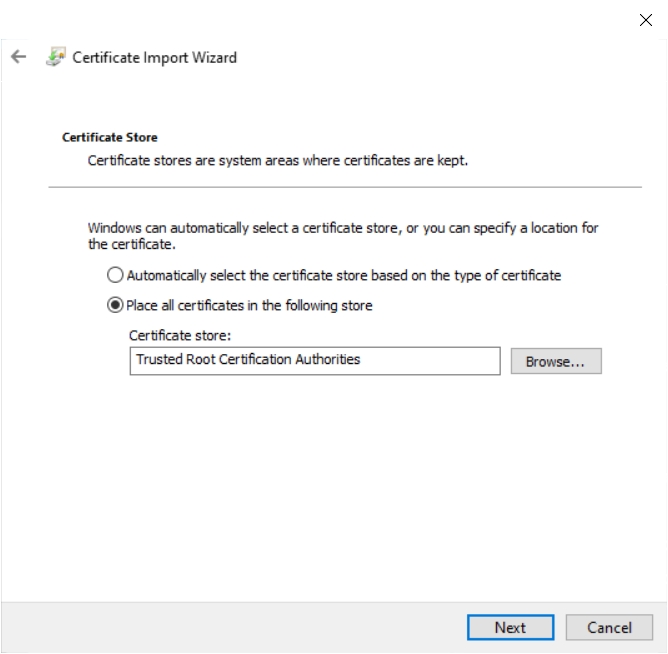 Download and Install the root certificate to Local Machine in the "Trusted Root Certification Authorities" directory.